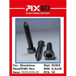 SHR-FIXED-DE 铁制六角螺钉 6.3x38 10 件